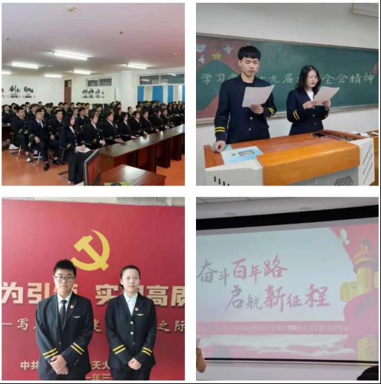 在庆祝建党100周年、建团100周年之际,2034170201团支部加强学习习近平总书记重要讲话精神等内容,广泛深入开展“新时代的伟大成就”等各类理论学习教育活动;线下结合专业特色,多次在九一八历史纪念馆、沈飞航空博览园等地开展活动,赓续红色基因,厚植蓝色情怀。